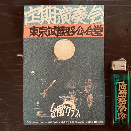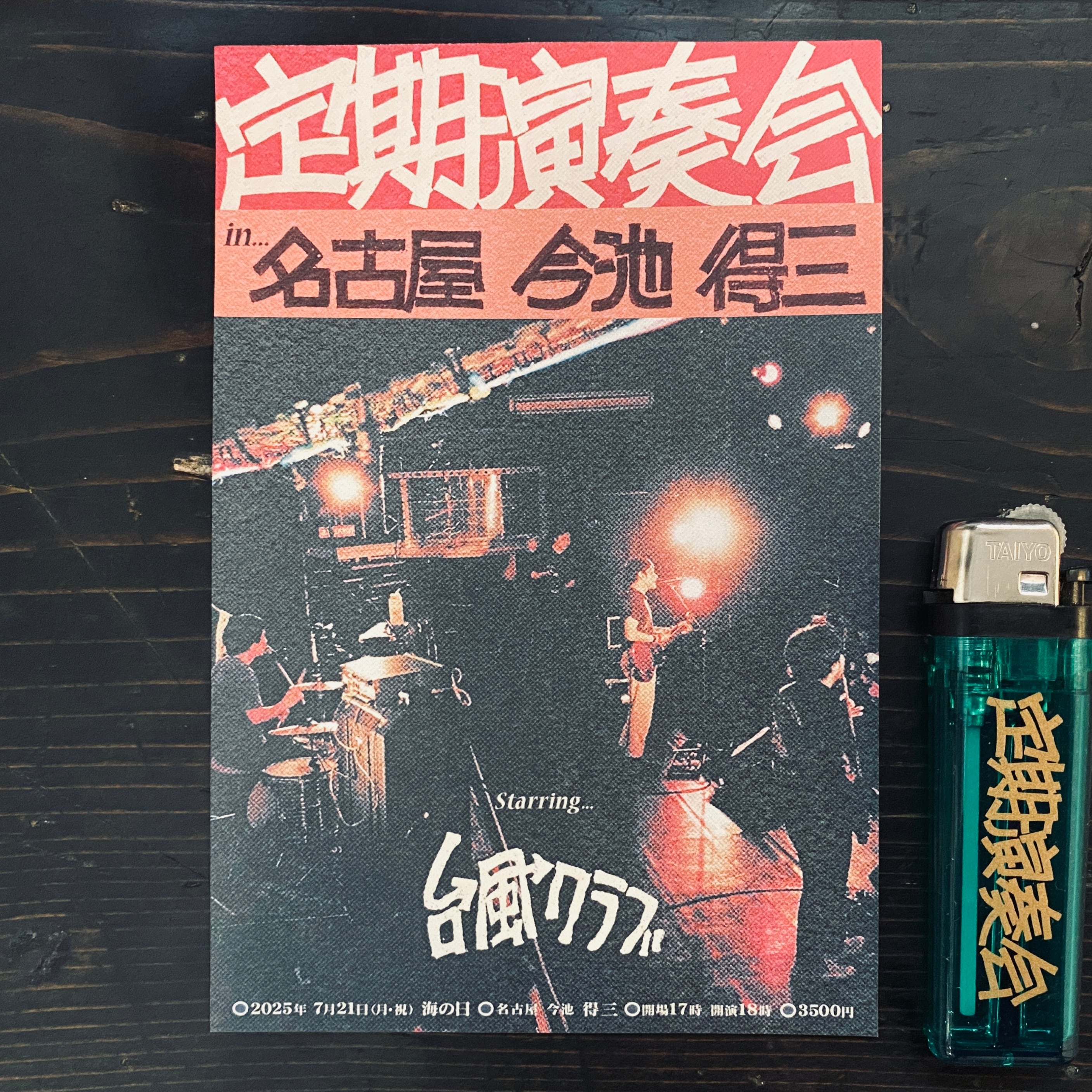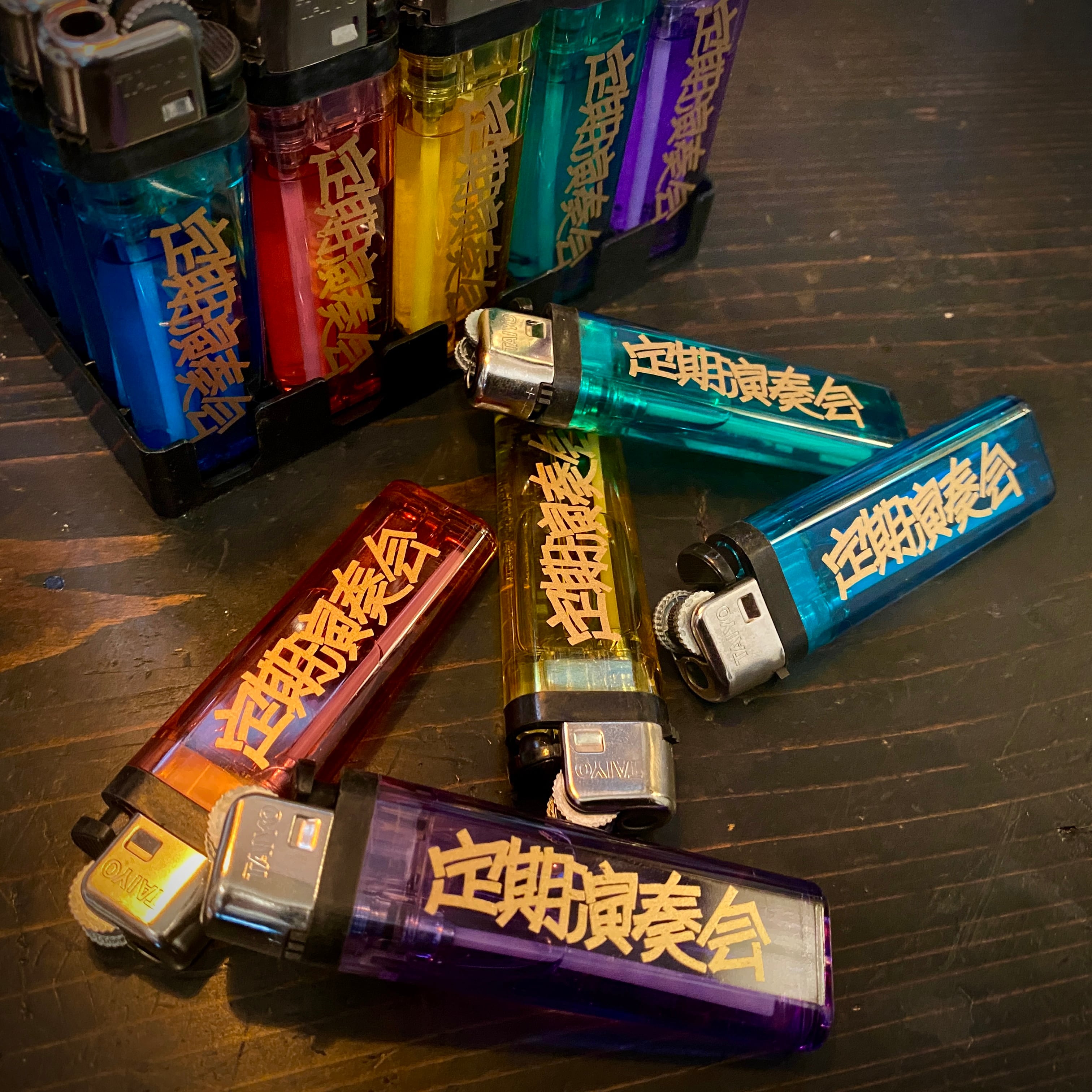 台風クラブが定期的に開催する単独公演「定期演奏会」のライターです。 イカした金のタイポグラフィが飴ちゃんみたいな透明のライターに映えます。 全色コンプの5本入! いまでは中々見かけることの少なくなったフリント式ライター。 着火時の「ジャ!」という音も小気味良く、あなたの一服を特別なものにします。 台紙として2025年夏の定期演奏会のポストカード(両面刷)が封入されています。
