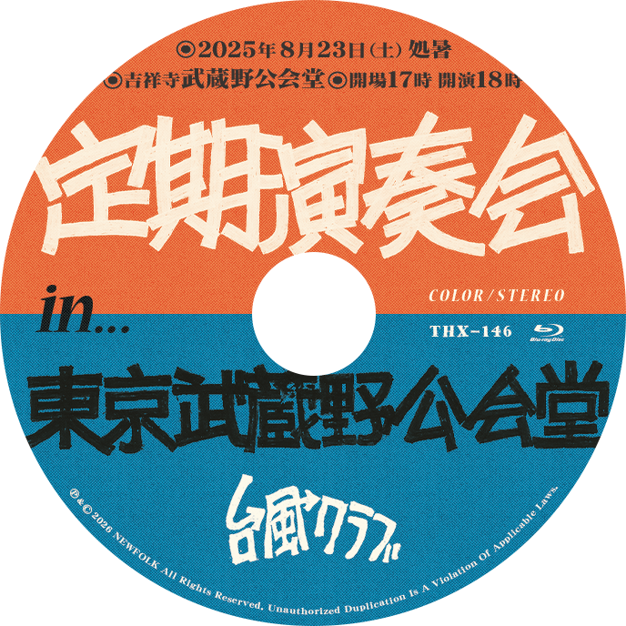 2025年8月23日(処暑)、東京は吉祥寺の武蔵野公会堂で開催された台風クラブの単独公演「定期演奏会」が映像作品になりました!≡3(ブルーレイですヨ、ご注意ください)